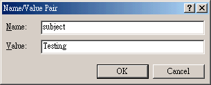 步驟三: 之後請在圖一中選擇 "Advanced..." ,在跳出的 "Advanced Form Properties" 按一下 "Add" 鍵,填入圖三的 "Name" 和 "Value" 欄位: