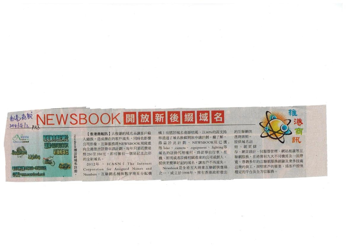 Newsbook是全港知名的网络公司之一,為庆贺成立15週年,答谢顾客多年的支持,服务全面提升,Plan48网页空间由原来的500MB增大到1GB,流量由原来5GB增大到10GB,Plan68网页空间由原来的1000MB增大到2GB,流量从8GB增大到15GB, Windows平台88NT网页空间由1000MB增大到3GB,流量也同时增大至20GB,相同的价格,让你可以享受更多的服务。再配合24 小时技术支援,让您体验最可靠、最具经济效益的互联网服务。 2013年我们将一如继往地向客户提供创新、全面的IT諮询和帮助客户更加有效地拓展业务。不要犹豫,立即申请开通服务吧。 想了解更多关於Newsbook的优惠,请登录Newsbook的网站: www.newsbook.net或致电2782 0197查询。