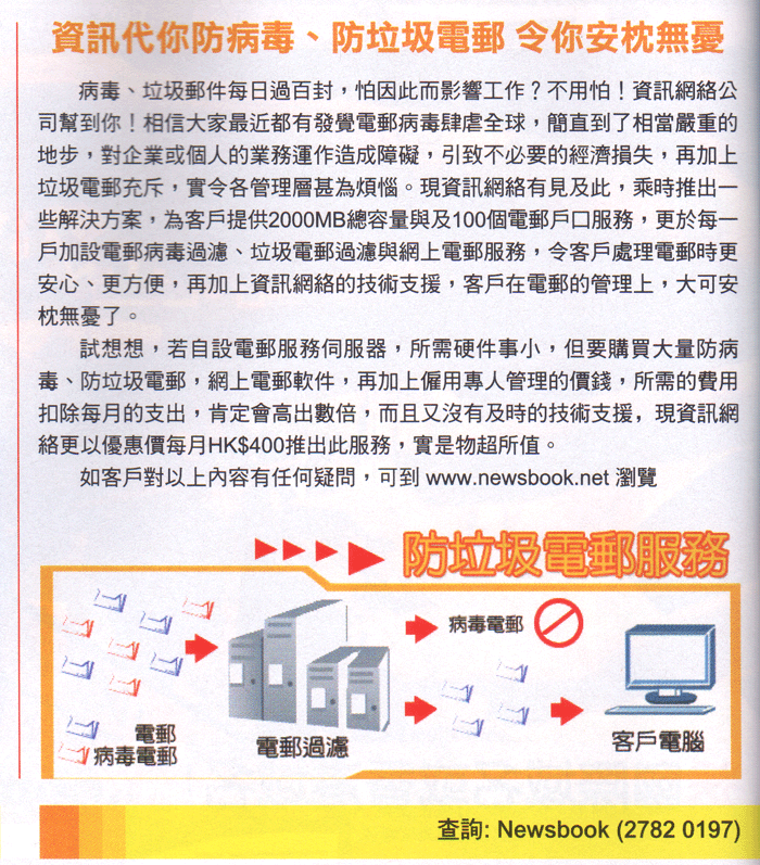 资讯网络是香港最大的网页储存,网页寄存,服务器托管,服务器租用,网页设计公司 资讯网络(Newsbook)是香港最具规模的网页储存商,提供稳定可靠的网页寄存及电邮服务,适合香港,中国及其他地区客户。