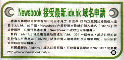 Newsbook接受最新 .idv.hk 域名申请