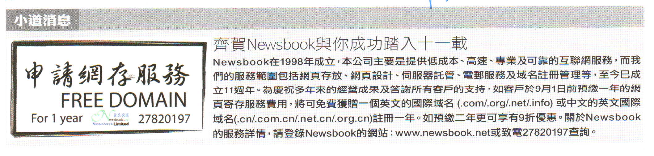 齐贺 Newsbook 与你成功踏入十一载 Ezone 的报导 (2009年6月12日)