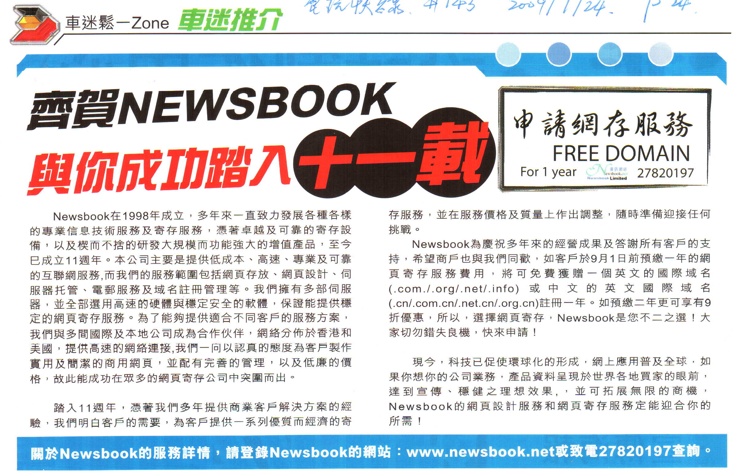 齐贺 Newsbook 与你成功踏入十一载 Ezone 的报导 (2009年7月24日)