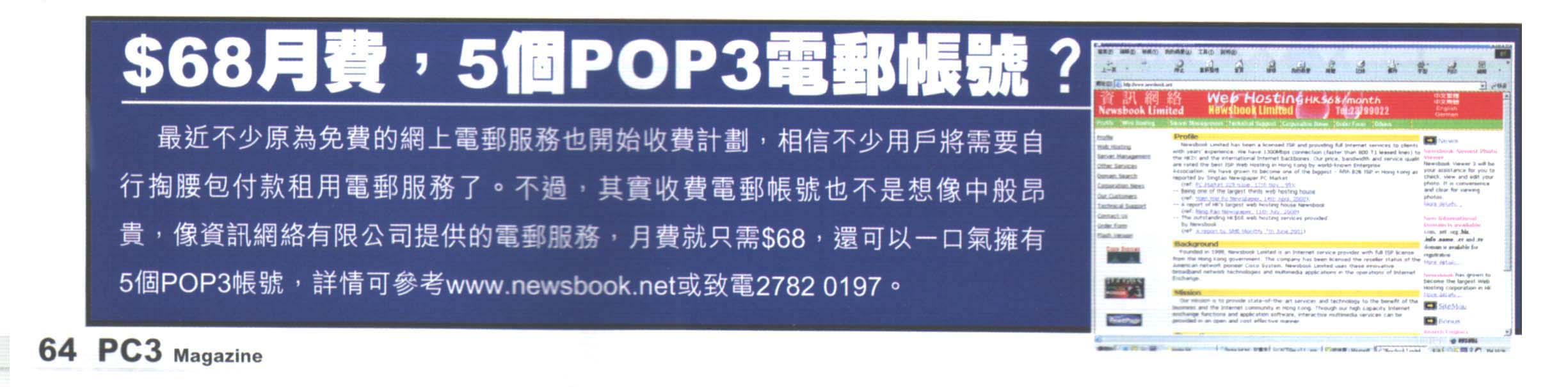 资讯网络是香港最大的网页储存,网页寄存,服务器托管,服务器租用,网页设计公司 资讯网络(Newsbook)是香港最具规模的网页储存商,提供稳定可靠的网页寄存及电邮服务,适合香港,中国及其他地区客户。