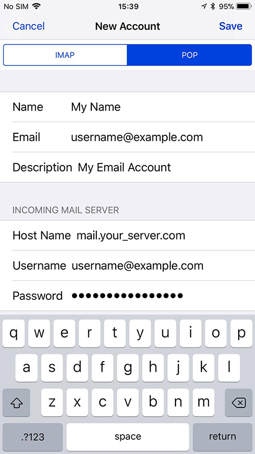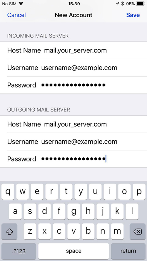 Tap the Host Name field and type in your smtp server (replace your_server.com with the smtp server).