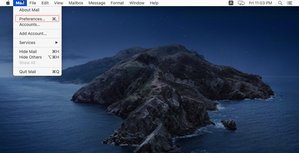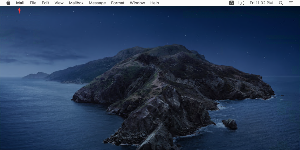 02 In the menu bar at the top of the screen, select "Mail" > "Add account".