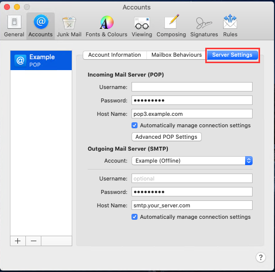 11 "Username" in "Incoming Mail Server" should be entered your email address, uncheck "Automatically manage connection settings"