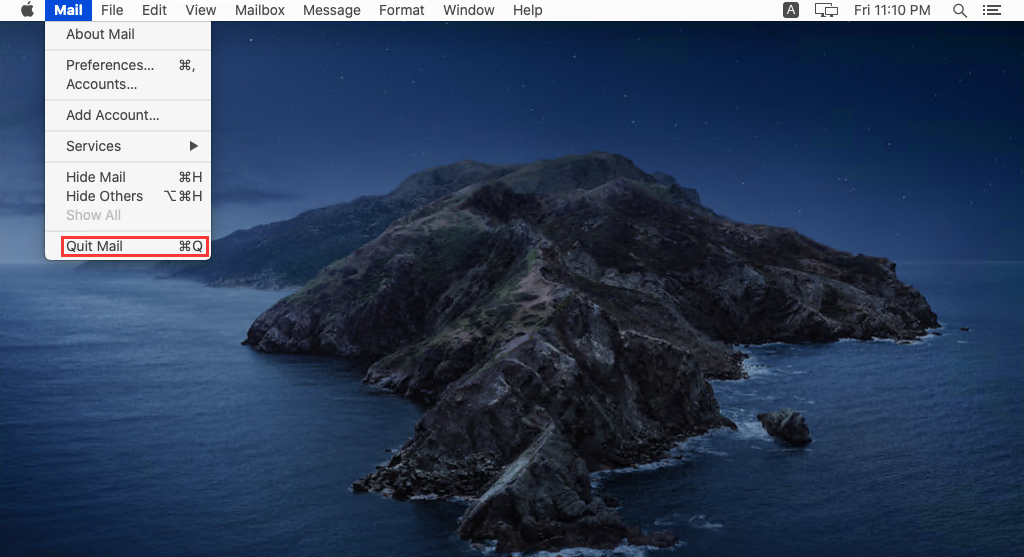 12 Resart software "Mail",Click "Mail",select "Quit Mail"