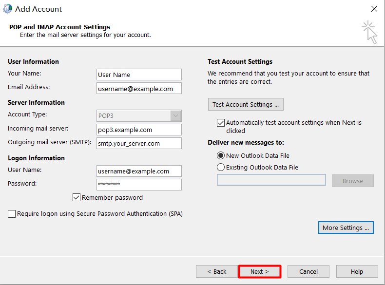 07 Enter your name, email address, username and password. Select "POP3" from the drop-down menu, and enter pop3.yourdomain in the incoming server fields. "User Name" should be the same with "email address".