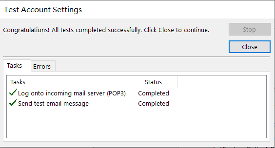11 Click "Close" to continue when all tests completed successfully. A confirmation screen will pop up.