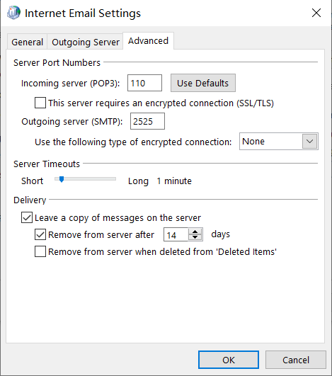 09 Select the "Advanced" tab, Enter "2525" in the Outgoing server (SMTP) field, and click "OK".