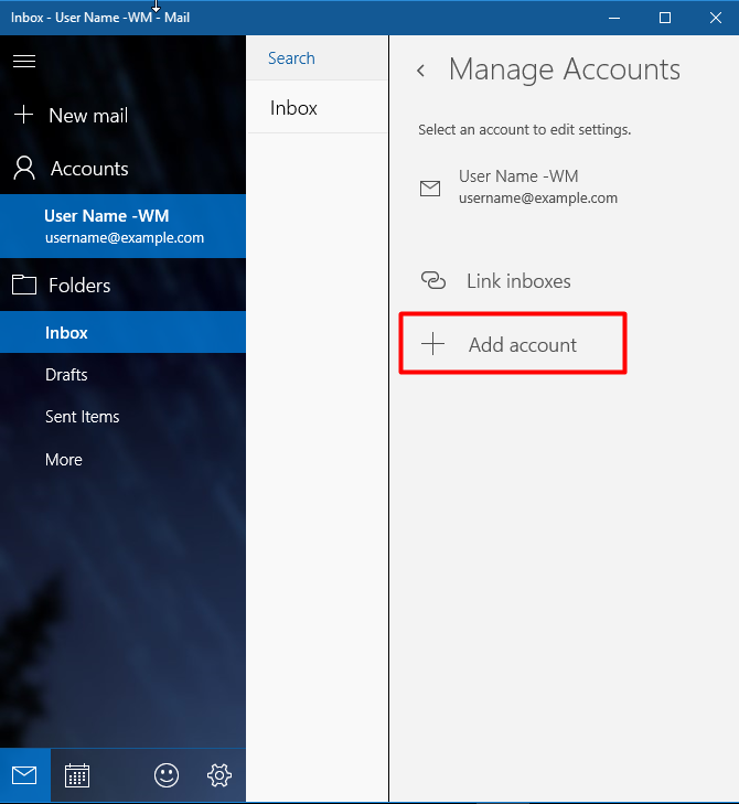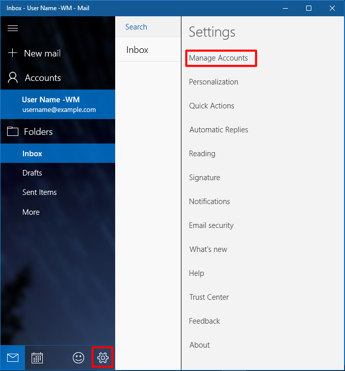 01 Click the settings Icon in the bottom left hand corner of the mail client. Click "Manage accounts"