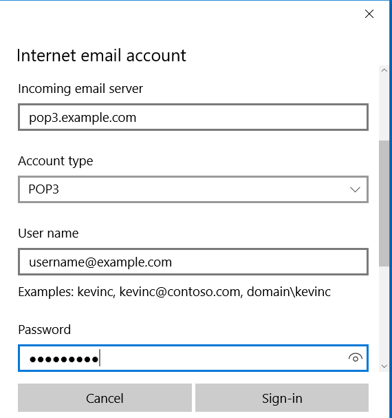 In Account name put the first part of your email address (Everything before the @ Symbol)(Account name will be shown in the software).