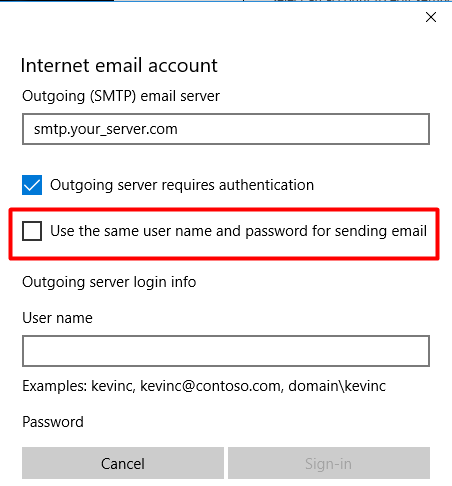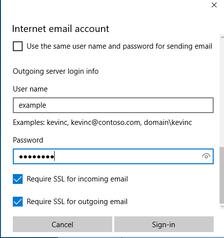 07 Ensure there is no ticks in "Use the same username and password for sending emails", complete smtp information, Click "Sign In"